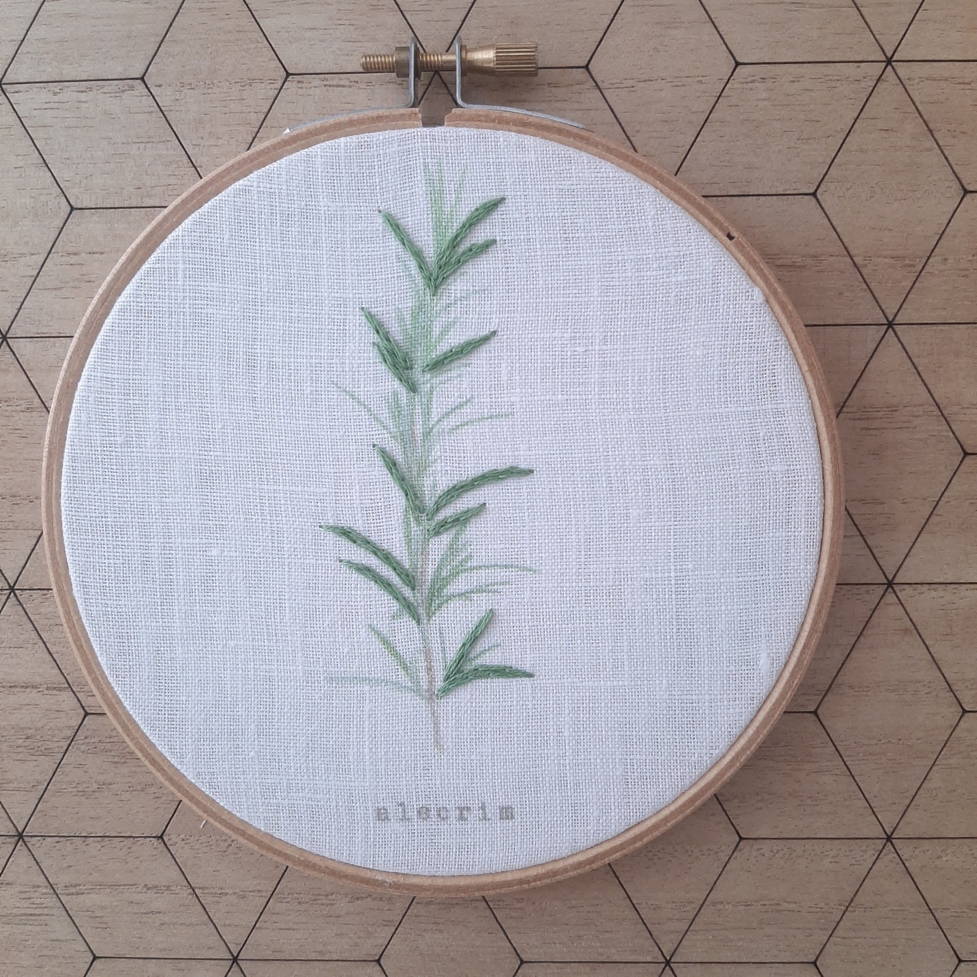 Alecrim 25,00 € Desconto de %. IVA incluído. Partilhar Comprar Contactar Imagem impressa em linho, bordada e emoldurada num bastidor de madeira de 12,7cm. Acabamento atrás em tecido de algodão.